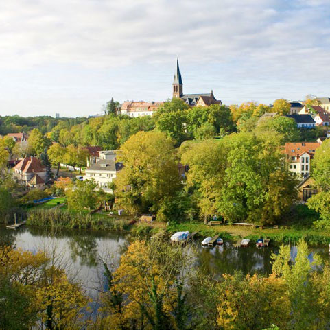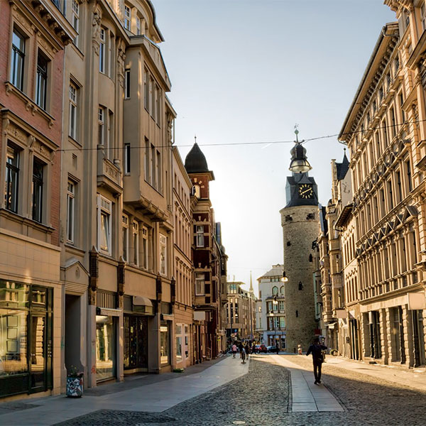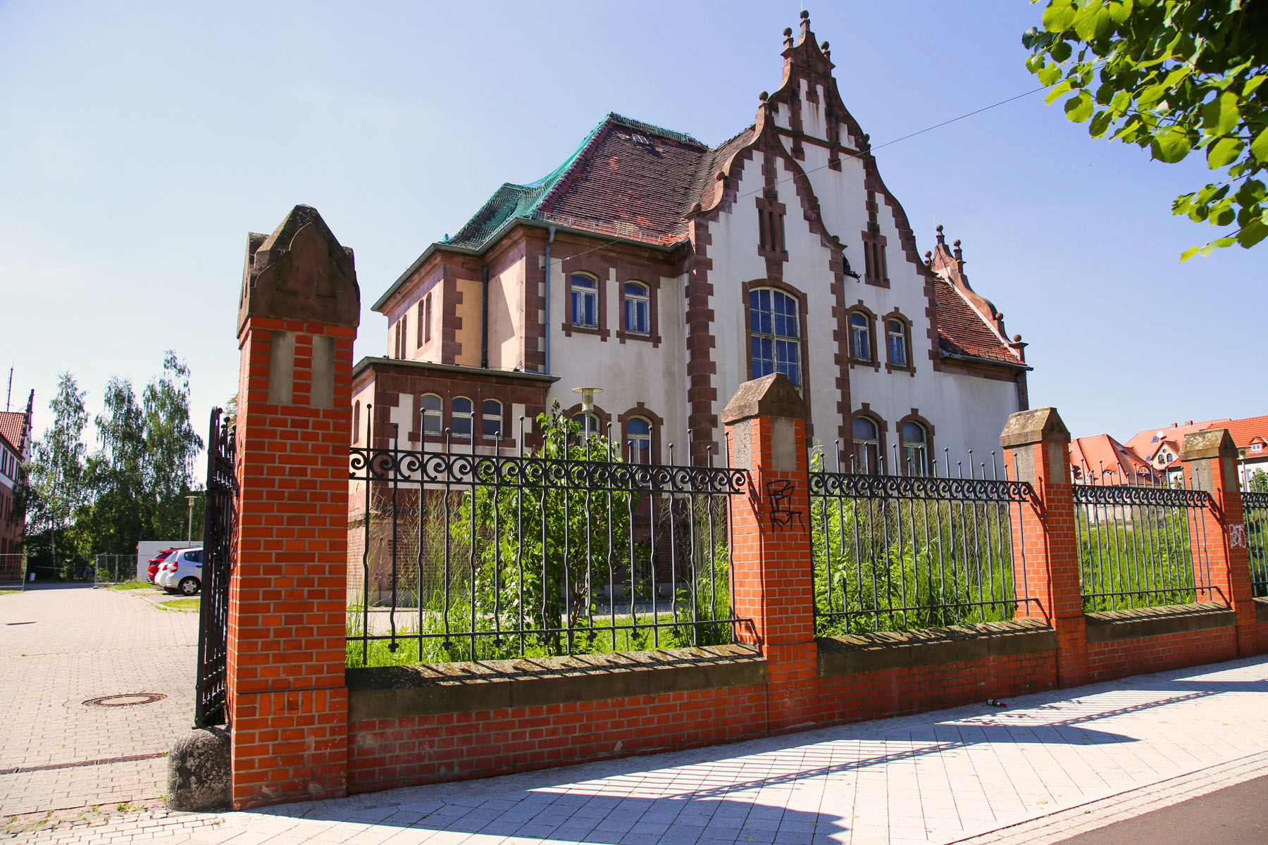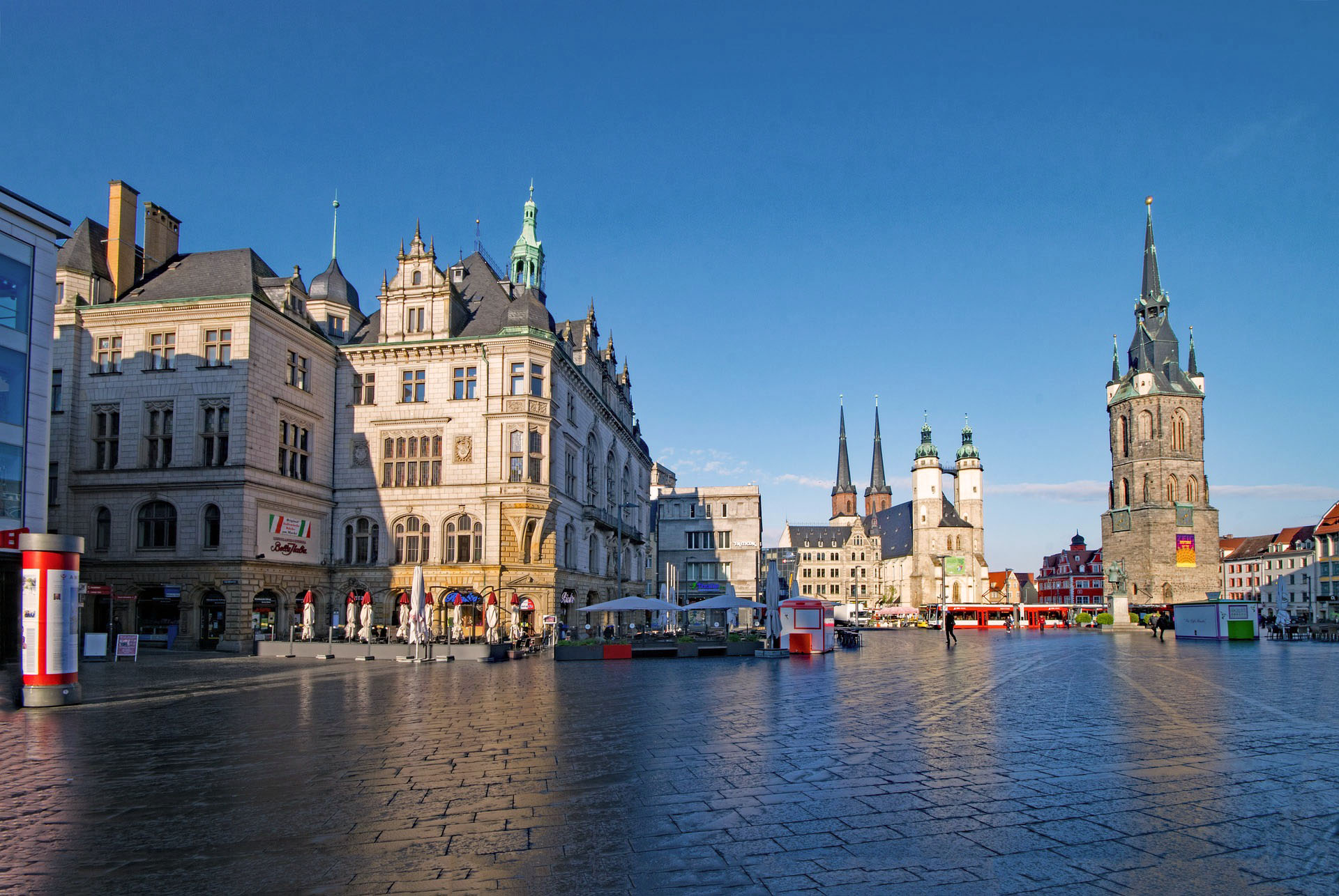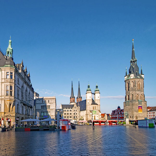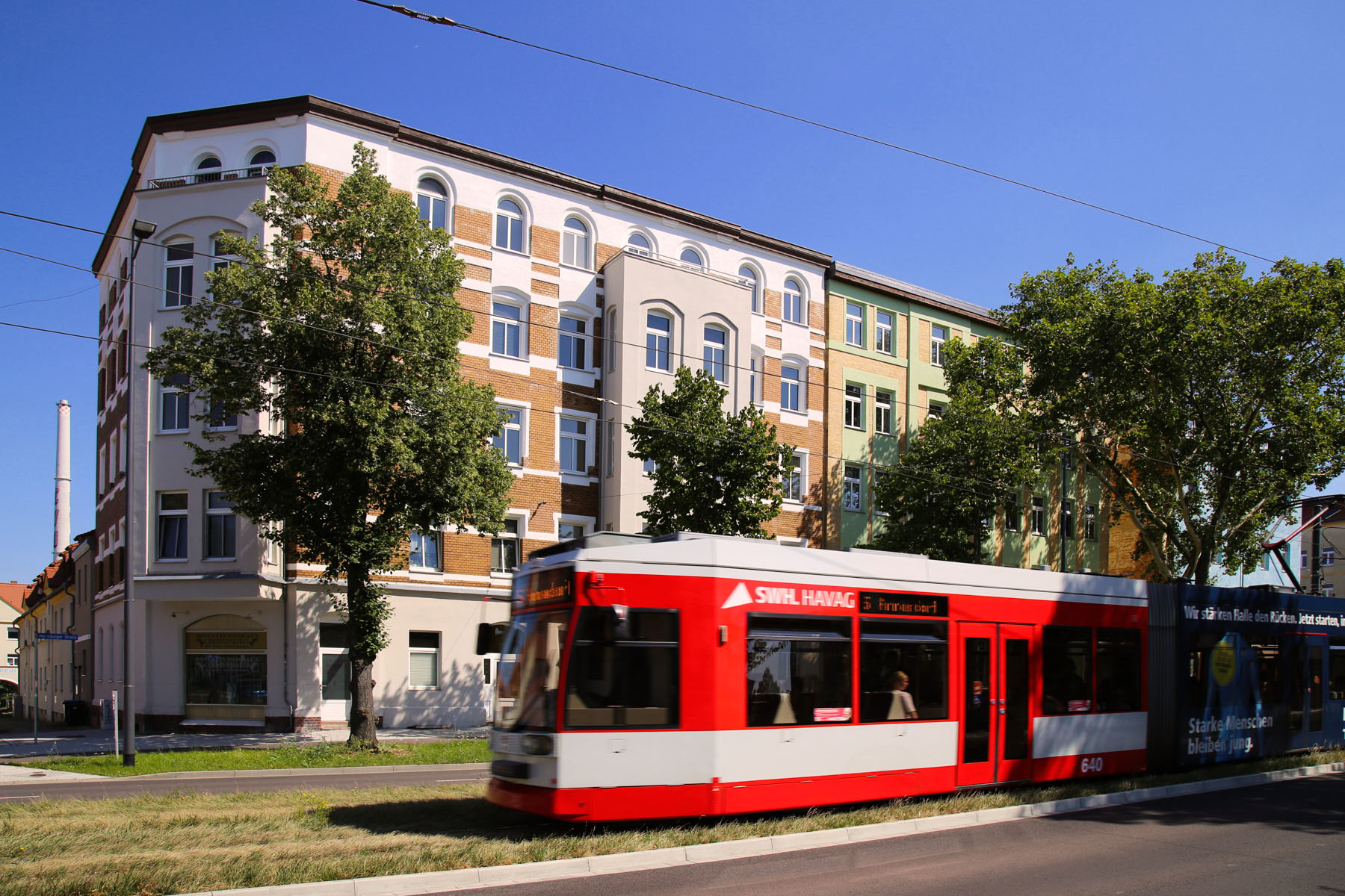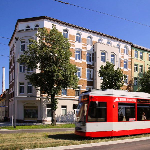 Das repräsentative Bauwerk befindet sich in zentraler Lage von Halle (Saale) mit direktem Zugang zum benachbarten Park und guten Verkehrsanbindungen.