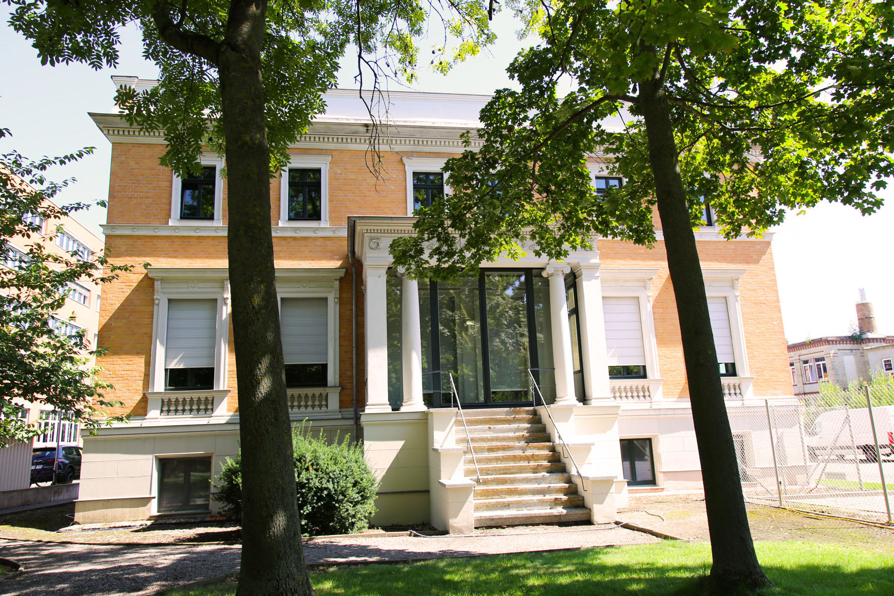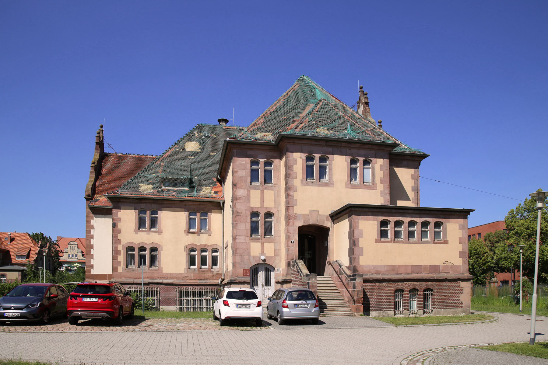 Das repräsentative Bauwerk befindet sich in zentraler Lage von Halle (Saale) mit direktem Zugang zum benachbarten Park und guten Verkehrsanbindungen.